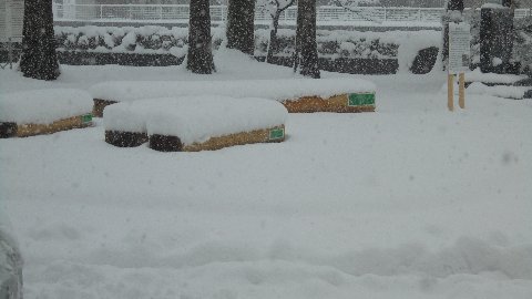 午前中から雪が降っています。大雪警報発令中です。すかしても見る見る間に積もっていきます。