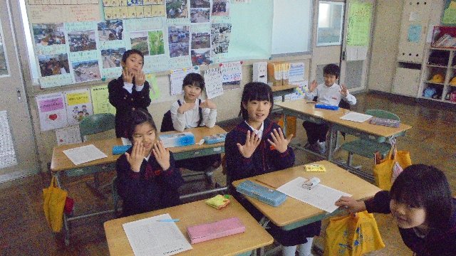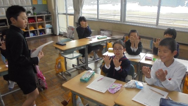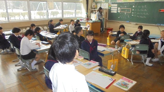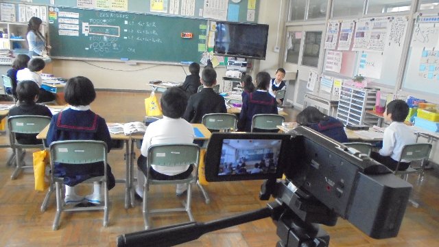 1年生が算数の勉強に頑張っています。あれっ、後ろにビデオカメラが・・・。話を聞くときは、発表する人の方をきちんと向けるよ。こんなに成長したよ、できることがたくさんあるよ、来年度につなげるため記録しました。4月に決まる2年生担任の先生に見てもらう予定です。こんなすてきな学級です。