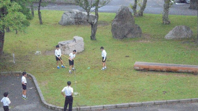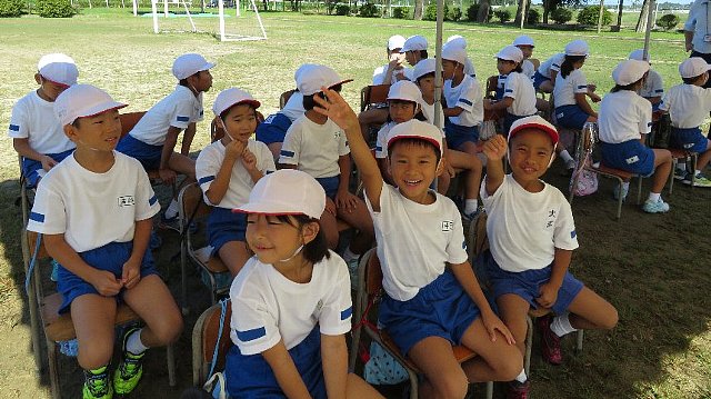 学校に戻ると大海小でも運動会の練習です。人数は少ないですが、熱気で負けていません。土曜の天気が気になります。みんなの熱意で晴らしたいですね。
