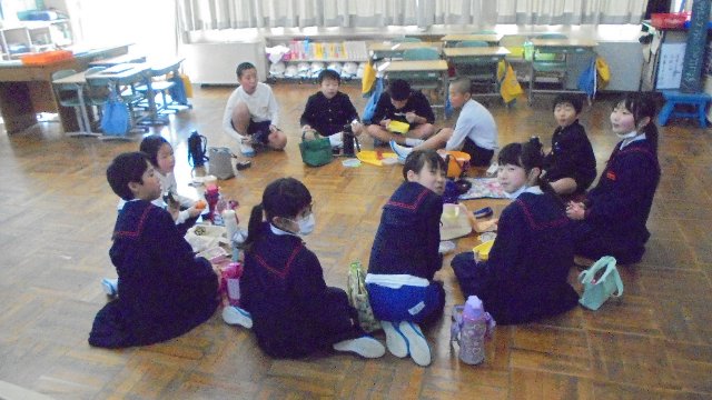 学年を離れ、異学年グループでお弁当を食べました。