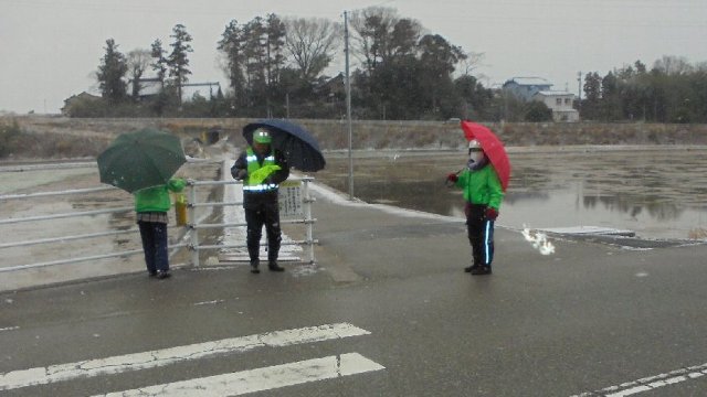 今朝は雪がちらつく中登校です。こんな寒い中も防花隊の皆様ありがとうございます。かぜなどひかずにこのあともよろしくお願いします。