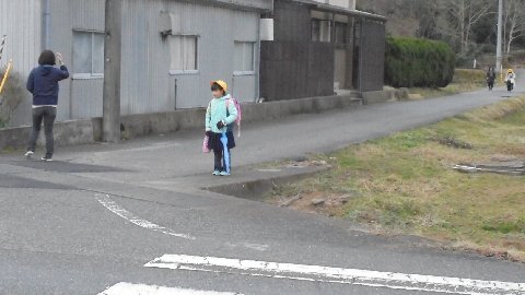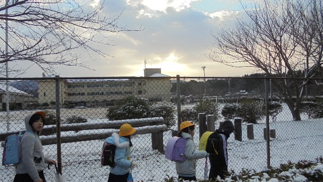 今日は寒かったですね。今朝は夏栗地区、瀬戸地区と八野地区の集団登校を迎えに行きました。どこもきちんと地域の方が付き添って下さり、子どもたちは安心して登校です。ちょうど若緑や黒川地区からのスクールバスにもあいました。運転手さんにも毎日お世話になっています。八野地区は小さな地区ですが来年は3人も新入生が入る予定です。にぎやかになりますね。