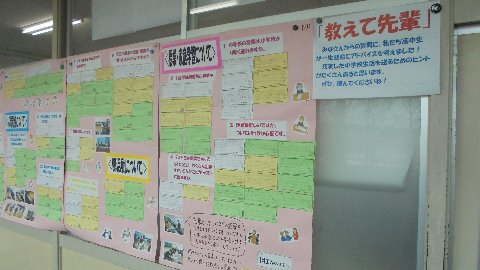 中学進学を控えていろいろな事があります。先日は入学説明会に出かけていきました。廊下には、先輩からいただいたアドバイスを掲示しました。やさしい言葉がいっぱい、不安も消えていきます。