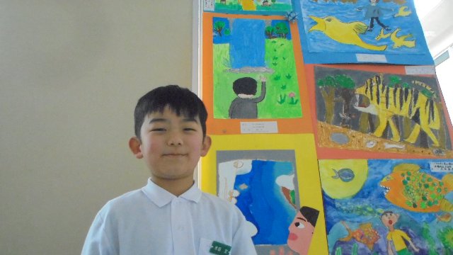 中学年の河北郡市図画展が大海小に巡回してきました。3年生が次回の参考に鑑賞会を行っていました。大海小の代表は米田さんと葛葉さんです。とっても上手ですね。