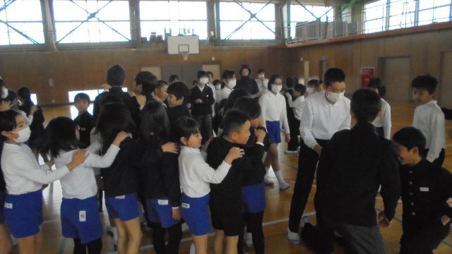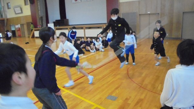 冬の体力作り、元気に遊ぶ。今週は全校で木曜日になわとび大会と金曜日にじゃんけん列車の遊びをしました。インフルエンザの影響で少し伸びてしまいました、
