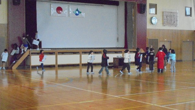 大海小では、全校集会が行われました。寒い日恒例の音楽室で。時間も超短縮してしました。暖かくて快適でした・・・ちょっと暑すぎという意見も(笑)