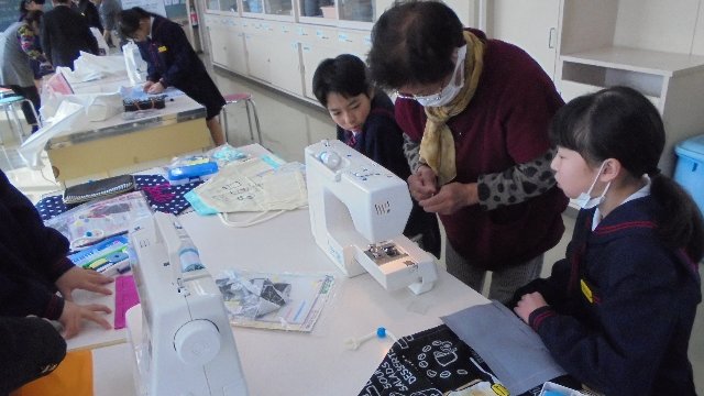 今年度最終回のサポートをしていただきました。毎回5年生6年生の家庭科では、児童の側について指導して下さりありがとうございました。おかげで子どもたちはとても針仕事が上手になりました。ミシンのかけ方も上手くなりました。
