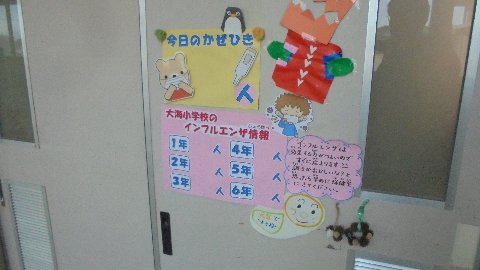 明日から土日の休みです。今週はご覧のとおりインフルエンザにかかって休んでいる子は一人もいませんでした。来週もみんな元気に過ごしたいものです。そのためには、お家でインフルエンザの予防を忘れないで下さいね。