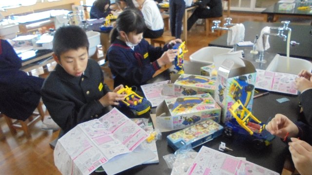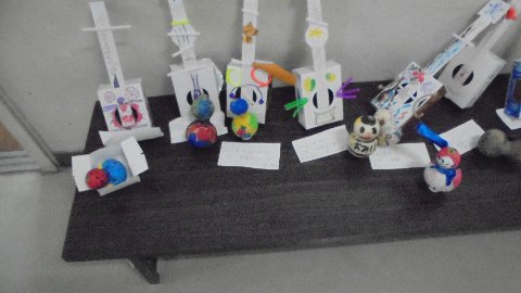 子ども達の創造力ってすごいですね。今日も楽しそうにいろいろ工夫して作品を作ります。手足が動くロボット、手足を引っ込めるカメ。どれも面白いですね。