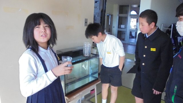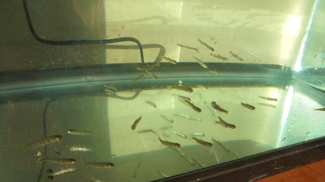 生まれたところ、住み慣れたペットボトルの入れ物からいよいよ引っ越しです。場所は玄関わきにセットされた大きな水槽です。ひとりひとり丁寧に移し替えていました。明日から毎日5回のえさやりです。