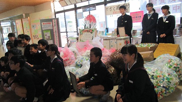 高松小中校区で集めていたペットボトルをライオンズクラブに贈呈しました。こんなにたくさん集まりました。認定の賞状もいただきました。りおさん、こうせいさん、代表で参加ありがとう。保護者のみなさんも協力ありがとうございました。収益はポリオワクチンとなり、小さな子ども達の命を救えるそうです。