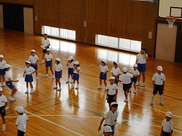 ドッジボール大会は、低学年高学年それぞれに紅白に分かれてしました。、