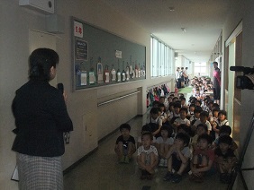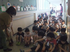 6月28日(金)に大海川が氾濫したという想定で、初めて大海子ども園と合同で水害時の避難訓練を行いました。残念ながら雨天のため、子ども園からは年長組さんだけの参加でしたが、それぞれに違う階段を使って、三階の教室前に避難することができました。いざという時には、自分の命だけでなく他の人の命の大切さも考えて素早く行動できるように、実際の状況を想定しながら避難訓練を重ねていきたいと思います。