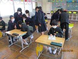 図書館の利用や給食の配膳も一年間で上手になりました。
