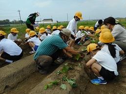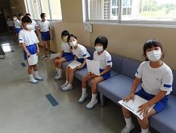 学校が再開となり、新しい学校生活様式の中で、手探りの部分もありますが、やっと子どもたちの元気な声と笑顔が戻ってきました。今日は、6年生に手伝ってもらって視力・聴力の検査を行いました。1年生のお世話も凛々しく、とても頼もしい大海小のニューリーダーたちです。また、低学年の子どもたちは、畑の先生にサツマイモの植え方を習いながら楽しそうに苗を植えることができました。大きく美味しいサツマイモに育ってくれればと思います。