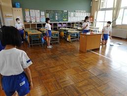 学校が再開して一ヶ月、掃除も縦割りなかよし班で協力しながらしっかりとできるようになりました。