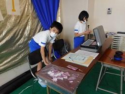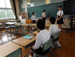 委員会によっては、より良い活動にしようと休み時間に臨時委員会を開いて話し合っているところもあります。短時間を心がけながらお互いに意見を出し合っていました。
