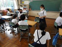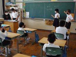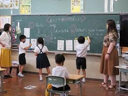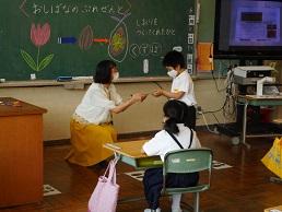 また、一年生は、中学校のALTの先生に教えていただきながら楽しい英語活動をしています。