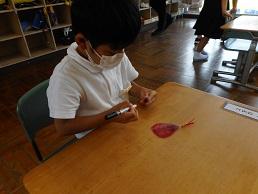 2年生は、図工の時間にいろいろな色の絵の具を混ぜ合わせて学級目標の文字を指で描きました。とても素敵な学級目標が掲示できそうです。体育や算数、英語など、各学年、時間を惜しんで学習に取り組んでいます。