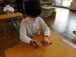 三年生は、書写の時間に初めての毛筆学習に取り組んでいます。お手本を見ながらですが、なかなか提出したい清書作品完成とはなりませんでした。次の時間には、ぜひ良い字を書きたいと意欲的でした。