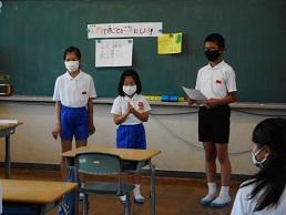 なかなか開催することができなかった代表委員会が行われました。児童会活動の中心となる企画委員をはじめ、各委員長などにより、今年度の児童会目標について議論しました。活発に意見が出され、目標決定までには至りませんでしたが、これからの活動がとても楽しみです。6年生がリーダーシップを発揮し、積極的、自主的な児童会活動となると思います。ご家庭での応援、地域での応援がいただけますようよろしくお願いします。