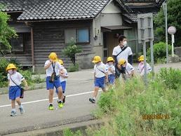低学年の下校時、中・高学年の下校時に、交通安全指導として、市だけでなく、県警本部、津幡署からも来ていただき、子どもたちと一緒に歩きながら下校の様子を見ていただきました。交通安全パトロールの皆さんに見守っていただけるのは、とても良いことで、安心ですねと言っていただきました。本当に毎日登下校を見守っていただいてありがたいことです。