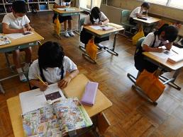 三年生は、書写の時間に初めての毛筆学習に取り組んでいます。お手本を見ながらですが、なかなか提出したい清書作品完成とはなりませんでした。次の時間には、ぜひ良い字を書きたいと意欲的でした。