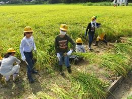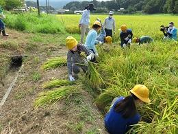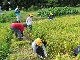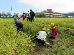 5年生の稲刈り作業が無事に終わりました。子どもたちは、地域の皆様方にご指導やお手伝いをしていただきながらとても楽しそうに活動に参加していました。