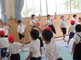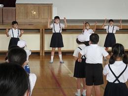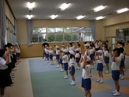 教室から体育館、プレイルームに場所を変えて、全体での応援練習を行いました。さすが、6年生は、赤も白も熱い気持ちが伝わる応援を見せてくれました。