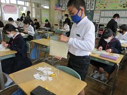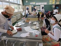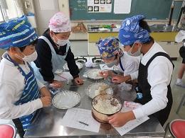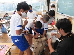 5年生は総合的な学習の時間にお米の学習活動を行っています。地域の方々にお世話になりながら「大海っ子米」を育てることができました。他の学年の子どもたちやお世話になっている地域の方々にお渡しする「大海っ子米」の準備をしています。自分たちも家庭科の時間に炊いて食べてみました。上々の出来に満足顔いっぱいでした。