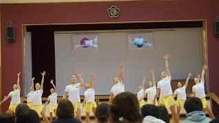 遊学館高等学校バトントワリング部の皆さんに素晴らしい演技を見せていただきました。昨年度全国大会二連覇を果たした圧巻の演技に、子どもたちはただただ感動でした。保護者の方、地域の方、遊学館高校の保護者の方々、多数ご参加いただきました。ありがとうございました。