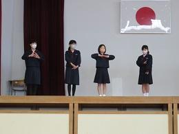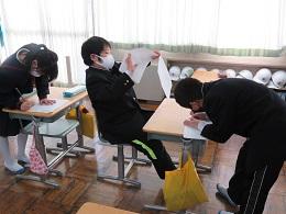 今日は強風と雪のため5限で下校でした。6限目に送る会の準備と練習を予定していた学年は、辛そうな表情でした。