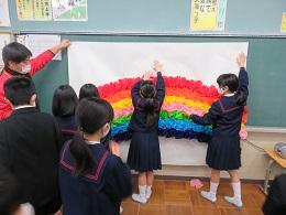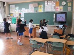 6年生は、各学級にありがとうメッセージを届け、朝1,2先生と一緒に6年生作成の動画を鑑賞しました。劇やダンスだけでなく、コロナ禍の中での苦しかった思いやありがとうメッセージなども入った映像に、時々笑いのツボに入りながら見入っていました。