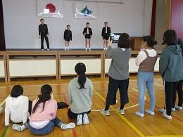 今年の6年生を送る会は、新型コロナウィルス感染予防対策を考慮し、1年生から4年生は順番に体育館に入り、6年生への感謝の気持ちを込めて出し物を披露してから教室に戻る形式をとります。進行役の5年生と6年生、6年生の保護者の方のみが観客となります。6年生も、動画撮影したもので下級生にお礼の気持ちを表現します。1から4年生は、自分たちの出番が終わってから教室で視聴します。