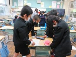 なかよし班(学年縦割)でも、感謝の会がありました。班のリーダーとして一年間お世話をしてくれた6年生に、感謝の気持ちを込めてプレゼントを渡しました。