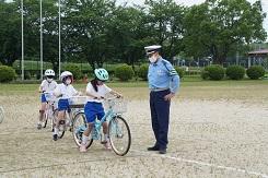 3、4年生の交通安全自転車教室を行いました。警察の方、市交通安全推進隊の方々に来ていただき、教えていただきました。はじめは緊張していた子供たちでしたが、次第にすいすいと上手に乗っていました。交通ルールとマナーを守って、正しい乗り方を心掛けてもらいたいと思います。