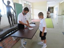 3年生から6年生までの子どもたちの体力テストを実施しました。反復横跳びやソフトボール投げ等の種目に挑戦しました。