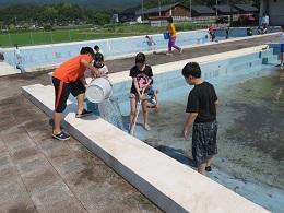 5,6年生が2時間かけてプール掃除をしてくれました。昨年は、新型コロナウィルス感染拡大防止のため、プールに入ることができませんでした。今年も、7月の体育で入る程度で、本格的な水泳学習ができません。しかし、高学年の子どもたちは、大海っ子たちが楽しくプールで活動できるようにと、一生懸命協力しながらプールを磨いて綺麗にしてくれました。子どもたちは、服が濡れるのも構わずとても楽しそうでした。