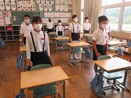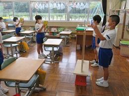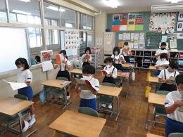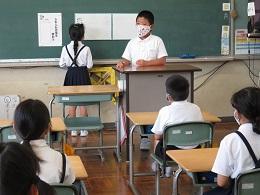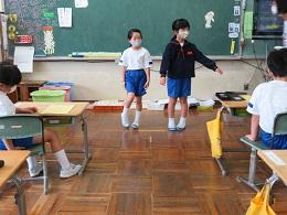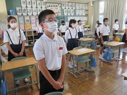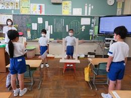 新型コロナウィルスの感染予防については、まだまだ気を緩めることはできませんが、高学年は『奥の細道』や『一握の砂』の暗唱、中学年は人間関係作りのためのじゃんけんゲーム、低学年は歌や健康確認など、朝もいろいろな活動で元気な声が聞こえるようになってきました。お腹の中から思いっきり声を出すことはできなくても、相手に伝わる声の大きさで話す経験を重ねていきたいと思います。