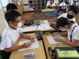 県内のコロナ感染者が減少傾向にありますが、2年生も家庭学習を想定し、リモート学習を試していました。3年生は、今月の生活目標の『ふわふわ言葉』について話し合いをしていました。日々、いろいろな学習が行われています。
