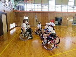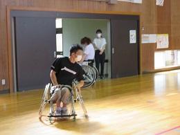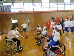 県内で活動する車椅子バスケットボールクラブ「Jamaney石川」の岩崎選手、半田選手に来ていただきました。お昼休み時間に、全校でお二人の素晴らしいプレーを見せていただきました。5年生は、給食時間は、パラリンピックについての解説をしていただき、午後からの授業では、日常の生活の様子や車椅子バスケットとボッチャを教えていただき体験することができました。
