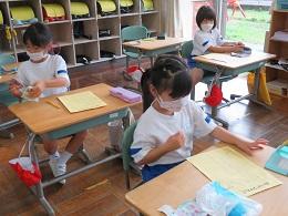 毎朝、各学級で今月の歌を歌っていますが、まだ大きな声で歌うことができません。でも、小さな声ですが、みんなで綺麗な声を響かせようとしています。その日の健康状態を当番が聞く学級もありますが、聞こえる声で答え、以前ほど非常に元気な大きな声で・・・、ということもありません。思いっきり大きな声をお腹から出すという経験を、ぜひ実感させてあげたいものです。落ち着いて静かな大海小ですが、少し寂しいものがあります。