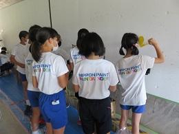 今年も(株)日本ペイント様の多大なご協力をいただき、アフリカンペイントアーティスト(日本ペイントアンバサダー)のSHOGENさんのご指導のもと、「自分を信じて!心の色で!いいね!」と励ましていただきながら描き切ることができました。これまで多大なご協力ご支援いただきました保護者の皆様、地域の皆様、卒業生の皆さん(中学生、大学生)、市役所の皆様等々、多くの方々と一緒にこの活動ができましたこと、本当に感謝申し上げます。ありがとうございました。これからも、大海の元気パワーポイントとなれればと思っています。よろしくお願いします。