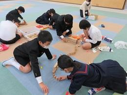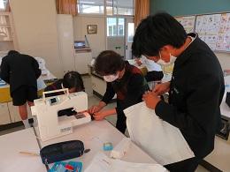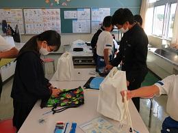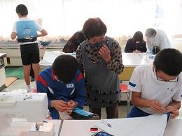 6年生は、ミシンの先生方に教えていただいて、自分のナップサックを手作りしました。まっすぐにミシンをかける・糸を通す、結ぶ・紐を通す・・・などなど、手作りのの壁を次々と越えながら完成させることができました。