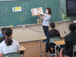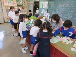 高松中学校のALTの先生に読み聞かせや低学年の英語の指導をしていただいていますが、今日はハロウィンメイクとお話に大喜びでした。2年生は、校舎のあちらこちらと「かけ算」になるものはないかとタブレットで撮影しながら探してました。図書室では、本を借りる子どもたちが列になり、図書委員の子どもたちは、いつもとても大忙しです。