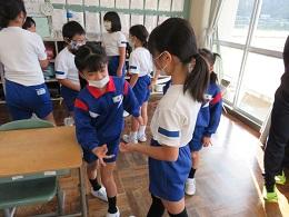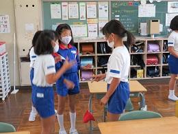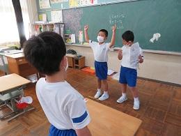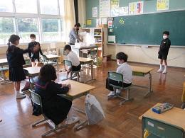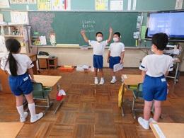 新型コロナウィルスの感染予防については、まだまだ気を緩めることはできませんが、高学年は『奥の細道』や『一握の砂』の暗唱、中学年は人間関係作りのためのじゃんけんゲーム、低学年は歌や健康確認など、朝もいろいろな活動で元気な声が聞こえるようになってきました。お腹の中から思いっきり声を出すことはできなくても、相手に伝わる声の大きさで話す経験を重ねていきたいと思います。