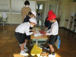1,2年生は、ふるさと学習会として、秋ノ実や葉を使ったおもちゃランドで遊びました。グループ別に考えたゲームは、先日の大海っ子フェスティバルに匹敵するぐらい楽しいものでした。開会式でめあてを確認し、ゲームを始める前のルール説明もばっちりでした。1年生をリードしながら活動する2年生は、とても頼もしかったです。みんなで力を合わせたおもちゃランドは、大成功でした。