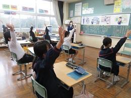 低学年の授業中の話し合いや自分の作品を説明をしたり聞いたりしている場面です。自分の気持ちや考えを聞いて欲しくて前に乗り出すように話しをする子どもたちも増えました。