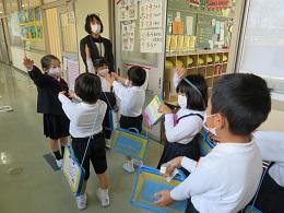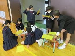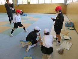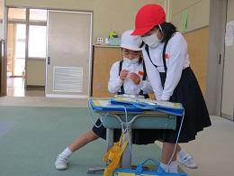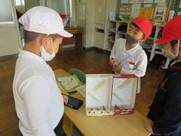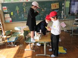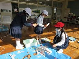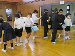 1,2年生は、ふるさと学習会として、秋ノ実や葉を使ったおもちゃランドで遊びました。グループ別に考えたゲームは、先日の大海っ子フェスティバルに匹敵するぐらい楽しいものでした。開会式でめあてを確認し、ゲームを始める前のルール説明もばっちりでした。1年生をリードしながら活動する2年生は、とても頼もしかったです。みんなで力を合わせたおもちゃランドは、大成功でした。