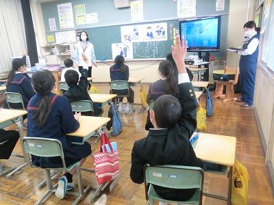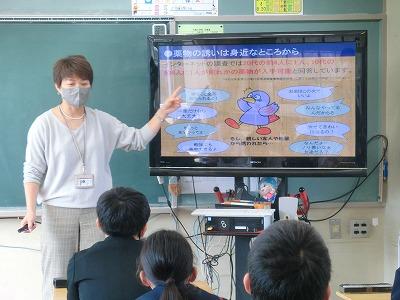 本日2限目に6年生対象に薬物乱用防止教室が行われました。金城大学の曽根志穂先生に来校していただき、薬物のこわさや誘われた時にどうするかについて詳しくお話していただきました。子供たちも真剣に聞いていました。